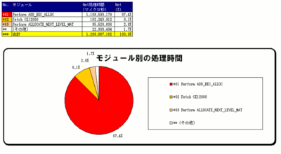 | お客様の検証用環境にてテストデータを用いた「実行時間分析」を行い、 問題となるプログラムを特定いたします。 |